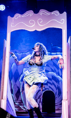 After ‘Lip Smacker’, the audience is invited to throw the aforementioned trinkets onstage during a ginger-tea break for a lingering flu. One handmade junk journal from a fan named Kia visibly moves her, as well as her asking people to kiss and “Human trinkets” they may have dragged to the show tonight. It’s this oscillation between chaos and sincerity that gives the show its shape, and the direction into ‘Trinkets’ that has the crowd apoplectic, but not quite like the pop that comes from them when Ashnikko’s pre-song banter about being “allowed to be a cunt” did wonders for her, especially with how her ‘Skin Cleared’. A mash-up of older material, including a splice of ‘Toxic’ and ‘Invitation’ expresses love for her earlier material and her younger self, while costume changes signalling new chapters and a tongue-in-cheek guided meditation leading into ‘Manners’.