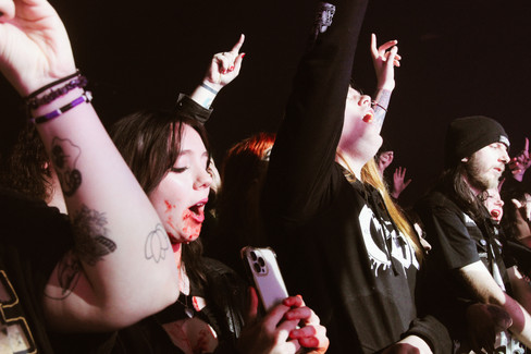 A phenomenal night ended with "Cry To Heaven" and a reprise of "Science Fiction Double Feature" a nod to The Rocky Horror Picture Show, a musical horror classic. Creeper put on an endlessly memorable performance, full of fun, surprises and spooky twists. An experience that would be enjoyed by anyone who appreciates horror, gothic culture, the alternative music scene, and even a performance. Unlike anything you've ever seen before, and worth every minute of time their supporters spent dousing themselves with fake blood. Creeper are a band set for greatness, and the quality of their live show solidifies this prediction.