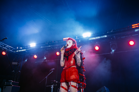 Personally the biggest name making their way over from Friday had to be Ashnikko. Having caught this show on tour back in December, it’s incredibly well produced and choreographed. As they come on stage to ‘You Make Me Sick!’ And ‘STUPID’ there’s an unreal level of crowd involvement. Again the choreography and fluidity of Ashnikko being perfectly on beat with their backup dancers whilst also vocally flawless is an outstanding part of the show. The chaos has a couple of pauses here and there for a wardrobe fix and sips of a Stanley cup but Ashnikko themselves are so interactive with the crowd whether it’s simply asking the crowd “Are you ready to rage?”, talking about bellybutton demons, or asking who is having a ‘Slumber Party’ to an almighty response. Rebooked to a smaller stage, she more than made up for it with a performance that was as intense as it was now intimate. Tracks like ‘Chokehold Cherry Python’ and ‘Tantrum’ had the crowd going wild, while the cheerleader theme added a playful twist for the eponymous song. The atmosphere was electric, and god they did us a favour agreeing to the Festival Republic stage. As they wrap up the set, there’s zero space for getting into the tent, which honestly may have put one or two off of seeing the set, that is the only drawback of the set if anything. We can’t wait to see them again, and in a rightfully bigger tent next time.
